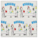 Nurse fabric, hospital scene with hospital bed, IV pole, IV bags, foley, oxygen tank and two nurses. Great fabric for graduation gifts.