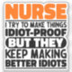 Funny Nurse Sayings "Nurse I Try To Make Things Idiot Proof But They Keep Making Better Idiots". Grab this Funny Nurse design as a funny gifts for an awesome mum, dad or friend.
