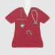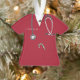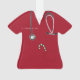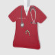 Creative nurse Christmas holiday gift ornament featuring red hospital scrubs, a stethoscope and a candy cane in the pocket. To personalise edit text to add name.