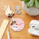 The perfect key chain for any nurse. Cute cartoon graphics of a nurse in white uniform, holding a big thermometer. A pink back ground and red text reading Nurse gives this key chain a fun whimsical look. Customise the text to read anything you want.