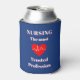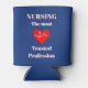 This nurse's can cooler has a navy blue background and a red heart with a normal cardiac complex on it. The text displays the highest honour that a profession can receive, an honour which Nursing has achieved for years. On the back of the can cooler you can personalise it with a name and title.
