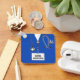 Creative nurse keepsake keychain featuring blue hospital scrubs and funny Swiss Army knife in the pocket. Edit text to add name.