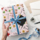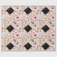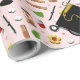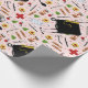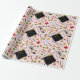 Creative nurse graduation gift wrap or nursing school graduation party decoration featuring healthcare supplies and graduation cap on pink backgound.