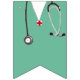 Creative nurse party decoration for nursing school graduation or healthcare celebration featuring hospital scrubs and stripes.
