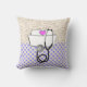 Nurse Pillow with apothecary abbreviations, stethoscope and nurse cap on front and angels quote on the back. Colour of pillow in 2 shades of purple. Perfect for nurse graduation and nurse retirement gifts.