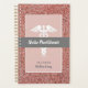 Get organised with this Nurse Practitioner Graduation Rose Gold Glitter Planner. It is designed with a modern pink rose gold faux glitter background with blush pink rectangle frame and grey horizontal stripe on the centre. The text is "nurse practitioner" in white calligraphy script lettering and "planner" is on lower front centre followed by name. A white caduceus symbol is on the centre. Makes a perfect graduation gift idea!