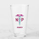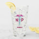 Nurse Practitioner NP Pink Caduceus Personalised Glass is modern designed with a colourful caduceus on the front centre. Name is in matching magenta pink retro lettering on lower middle. The text "NP" is on the sides of the pink and teal symbol. Fun to have a cold beverage from a cool designed glass! Perfect for a nurse practitioner gift!