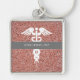 Get your day started off right with this Nurse Practitioner Rose Gold Glitter Personalised keychain. It is designed with a pink faux glitter background and grey horizontal stripe on the centre with your full name and occupation job title "FNP." A white caduceus symbol is on the centre.