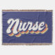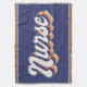 After a hard day, your favourite nurse will love bundling up in this groovy nurse blanket. The word Nurse in featured in bold retro script in shades of blue, orange, yellow, and white. From Called.