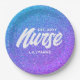 Nurse RN Graduation Blue Purple Glitter Monogram Paper Plate