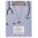 A personalised clipboard with medical gear in a nursing professional's pockets. A nurse's pockets are always full! An excellent gift for the nursing graduate or the experienced nurse. An added bonus of a double sided design. All text boxes do not need to be filled out. Delete text if not needed. Fun and creative! Specific medical profession requests, please contact Night Owl's Menagerie. Original art by Night Owl's Menagerie, 2015.