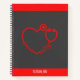 Trendy, stylish and girly notebook features a red stripe at the top, "I'm a nurse" red heart stethoscope beneath and personalised name on a red stripe at the bottom on grey background.