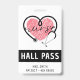 Nurse hall pass badge with pink heart and stethoscope. Personalise it by adding your name and classroom details. Great for an elementary school teacher.