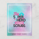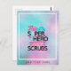 Add a name or other text to personalise this fun modern gift for nurses which reads 'this superhero wears scrubs'. Pink and blue typography.