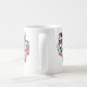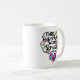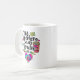Nurse design mug features tie dyed effect objects including a heart with heartbeat, stethoscope, hypodermic needle, cup of coffee, bandages, and black text that reads THIS Superhero Wears Scrubs!