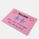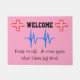 Medical series: A fun doormat for a nurse or other medical staff. In pink, it has the classic medical red cross symbol as a stylised graphic and an ecg trace of a healthy heartbeat. The fun text says "Nurse on call - do come again when I have less time".