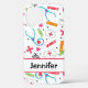 Cute and whimsy nurse art combined with personalisation makes a great cell phone case for a nurse. Personalise with a name on a white band with red edging which you can delete if you don’t want the personalisation. The hand drawn lettered words Love a Nurse are accompanied by a stethoscope, colourful bandaids, retro nursing caps, red hearts and black dots on a white background. The whimsy art of Love a Nurse is original art by Phyllis Dobbs. The colours are white, red, black, bright fuchsia pink, lime green, Fully customisable to personalise.