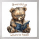 Cute teddy bear wearing glasses and reading a book. Great for encouraging your child to read. Square nursery decor 12" x 12". Use the "Personalise this template Details" link to change the name. Text in brown. AI assisted graphic purchased with commercial use. Artwork: MokoDE
