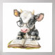 Cute black and white cow wearing glasses and reading a book. Great for encouraging your child to read. Also would be a good gift for a teacher for the classroom. Square nursery decor 12" x 12". AI assisted graphic purchased with commercial license. Artwork: MokoDE