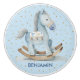 Nursery Baby Blue Rocking Horse Name Drawer Ceramic Knob