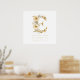 Delicate Romantic Floral E Letter in Gold Glitter Effect Posters for Nursery Decor.