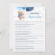 Purchase this editable card and enjoy high quality Baby Shower Nursery Rhyme Quiz card for your event! Blue and Silver Balloons, Teddy Bear. Baby Shower Activities!