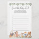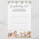 Nursery rhymes themed baby shower guess the baby food game card features a watercolor nursery song illustration and watercolor greenery eucalyptus garland and elegant handwritten style font.