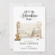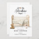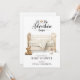 A cute rustic boho baby shower invitation featuring a bamboo crib with teddy bear and baby bottle.