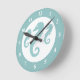 Nursery wall clock with seahorses | sealife design. Cute gift idea for little kids room. Blue and green nursery decoration with personalizable name. Sealife animal cartoon. Beach theme print.