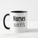 Funny Gift Ideas for Nurses. This Nurse design has the funny saying, Nurses call the shots and it has a hypodermic needle sticking in the middle of the design. Great gift for a RN, LPN, CNA, or anyone in the nursing profession.