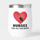 This Stemless Wine Tumbler design has a red heart with a shot and text that reads “NURSES CALL ALL THE SHOTS”. It’s also available in Stainless Steel.