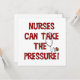 A stethoscope and red text nurse design that reads Nurses Can Take The Pressure! Nurse T-shirts, bags, mugs, cards, stickers, and more for nurses and nurse aides.
