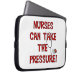 A stethoscope and red text nurse design that reads Nurses Can Take The Pressure! Nurse T-shirts, bags, mugs, cards, stickers, and more for nurses and nurse aides.