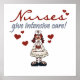 A cute ragdoll nurse design on nursing T-shirts, hoodies, mugs, cards, stickers, tote bags, buttons, and other nurse apparel and gifts with text that reads "Nurses Give Intensive Care"!