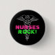 Nurse Rock Pinback Button with caduceus symbol. Personalizable text and background colour.