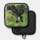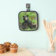 A beautiful shot of a nursing black bear and her twin cubs available on pot holders.