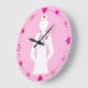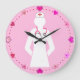 Nursing Icon with Stethoscope Wall Clock. Pink hearts for the hours and a cotton candy pink background. A great gift idea. Excellent office art for the Nursing station, Hallway, Clinic, Doctor's office, pediatrics or for the home. Available as a square face and also a smaller round clock. The background color is customizable to suite your decor.