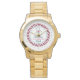 A watch with a red chevron faux glitter pattern. Not actual glitter, just an image. Layered over top is a round frame and inside is the saying: Nursing is a work of heart, with a little red heart and a grey stethoscope.