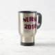 On one side of this mug in bold reddish-purple curved text it reads: "NURSE 2010". In the middle of this text in smaller, customisable text are the words "class of". Give this mug a more personal touch by adding your name or your school name to the opposite side! This design can be used on any of a number of different mugs, glasses and steins. For all those who worked so hard to be 2010 graduates from nursing school.