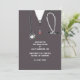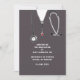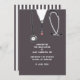 Creative nursing school graduation announcement for nurse grad featuring grey hospital scrubs.