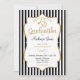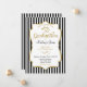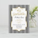 An elegant black and gold Nursing School graduation announcement invitation featuring faux gold glitter accent frame and black and white stripes with gold and black text and a gold glitter stethoscope. This elegant RN, LPN, APN Nurse graduation announcement is a cute and fun way to invite your guests for your big day.