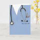 Creative nurse graduation card featuring hospital scrubs, name tag and funny Swiss Army knife. To personalise edit text to add name of nursing school grad.