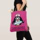 Nursing school graduation class custom Tote Bag. Funny penguin nurse cartoon holding a big syringe needle. Bulk gifts for graduate students, RN nurse, caregivers and others. Pink or custom colour. Double sided print.