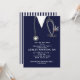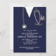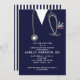 Creative nursing school graduation invites featuring navy hospital scrubs, Swiss army knife and stethoscope.