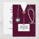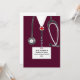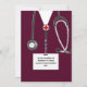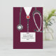 Nurse grad party invites or nursing school graduation announcement featuring creative maroon hospital scrubs and stethoscope.