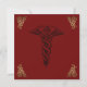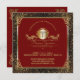 Elegant gold, black and red RN nurse graduation party invites with faux gold accents- Elegant faux gold glitter on black with gold metallic look scrolls decorate the corners. Centred is a gold metallic effect decorative circle frame and leaf scrolls with a black caduceus medical symbol. Reads Announcing the Graduation of in curved golden letters at the top. Below is the personalised nurse's name in elegant gold script and other graduation party details in gold lettering, including RSVP information. Against a solid deep, rich red background. Back has matching red background with gold scrolls in the corners and large, black caduceus symbol in the centre. Works for sophisticated Great Gatsby themed nurse party as well.