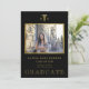 Modern elegant black and gold glitter nursing school graduation announcement card template with your custom photo and text.