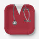 Unique medical-themed party plates featuring red nursing scrubs and stethoscope illustration. Add your text to customise.