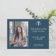 Modern elegant navy blue and white nursing school graduation announcement card template with your custom photo and text.