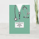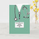 Creative nursing school graduation card template featuring green hospital scrubs. To personalise edit text to add name of your favourite nurse, physician assistant or doctor.
